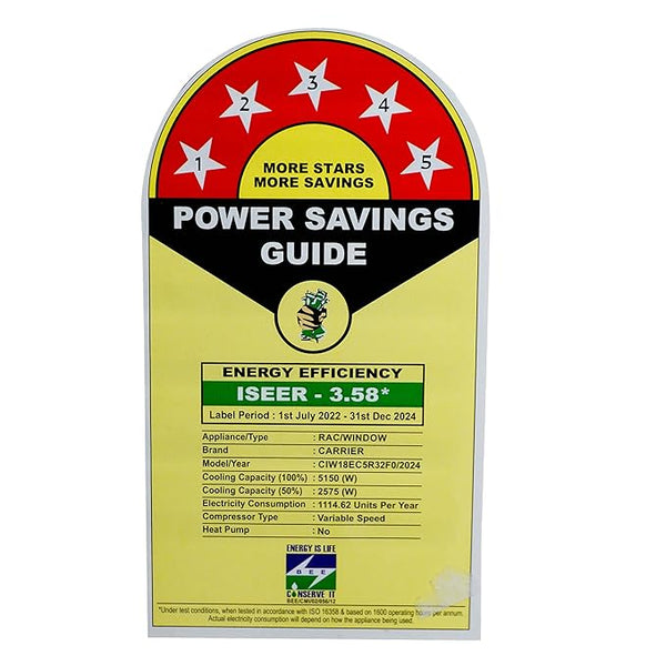 Carrier 1.5Ton 5 Star Copper, Dust Filter & Turbo Mode Window Inverter Air Conditioner CARRIER WIN Air Conditioner 18K ESTRELLA EXI 5 STAR, White
